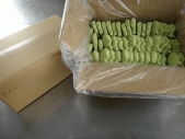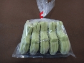 緑色のもちもち生地のミニたいやきです。食べやすいあっさりしたずんだあんを使用しています。